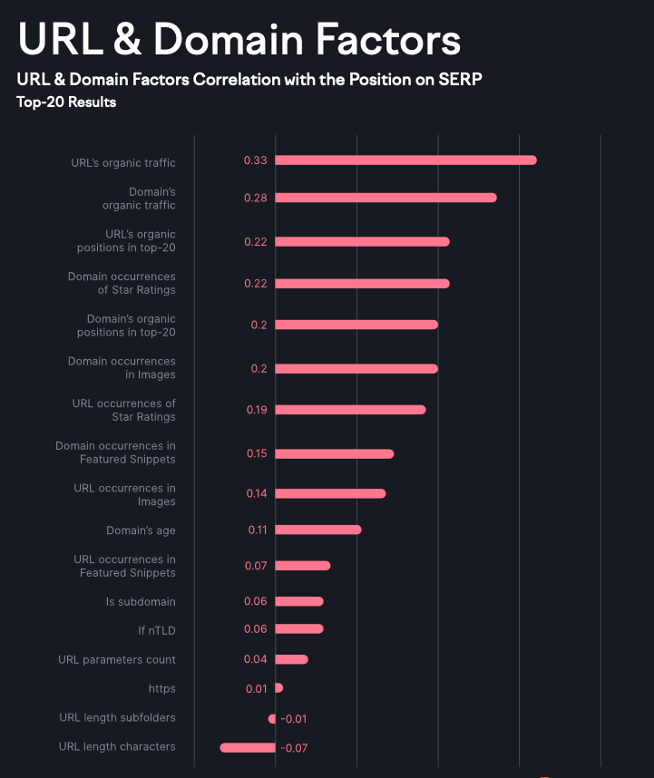 - URL-Keyword Gelijkenis: Pagina’s met hogere rankings hebben de neiging relevante termen in de URL vaker op te nemen dan pagina’s met lagere rankings.